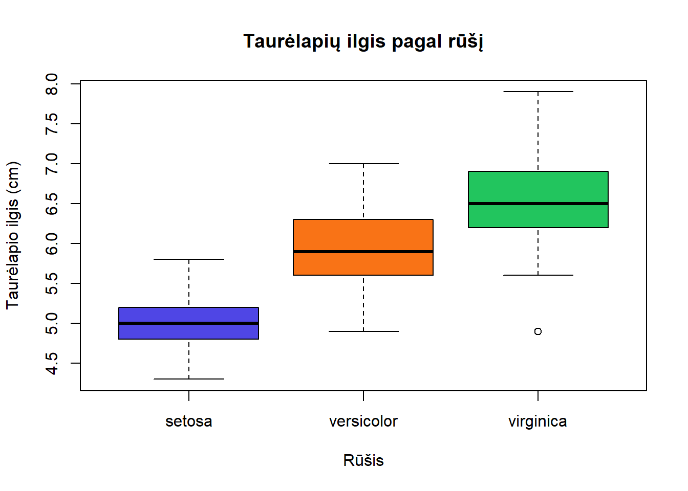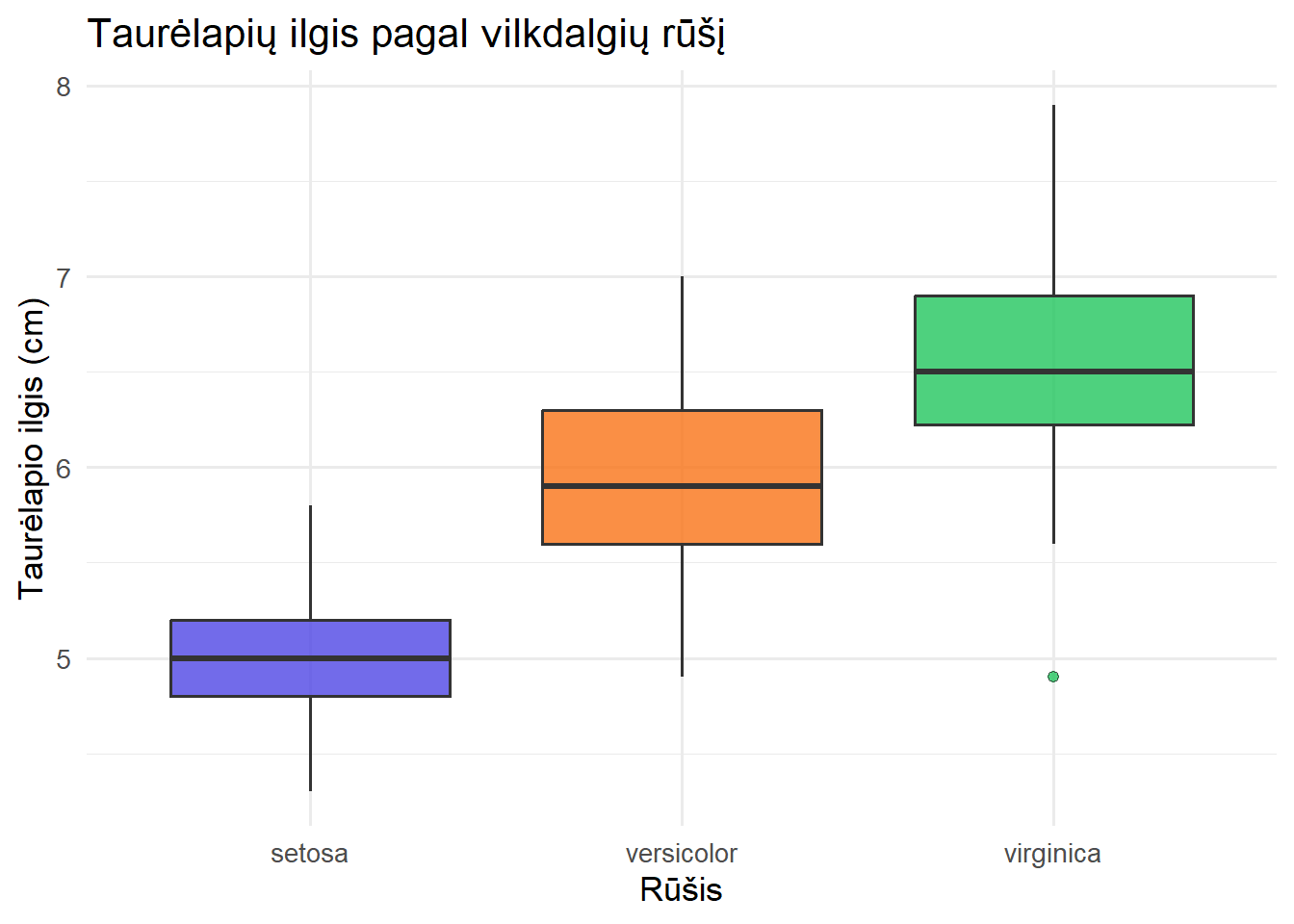 ylab = "Taurėlapio ilgis (cm)",